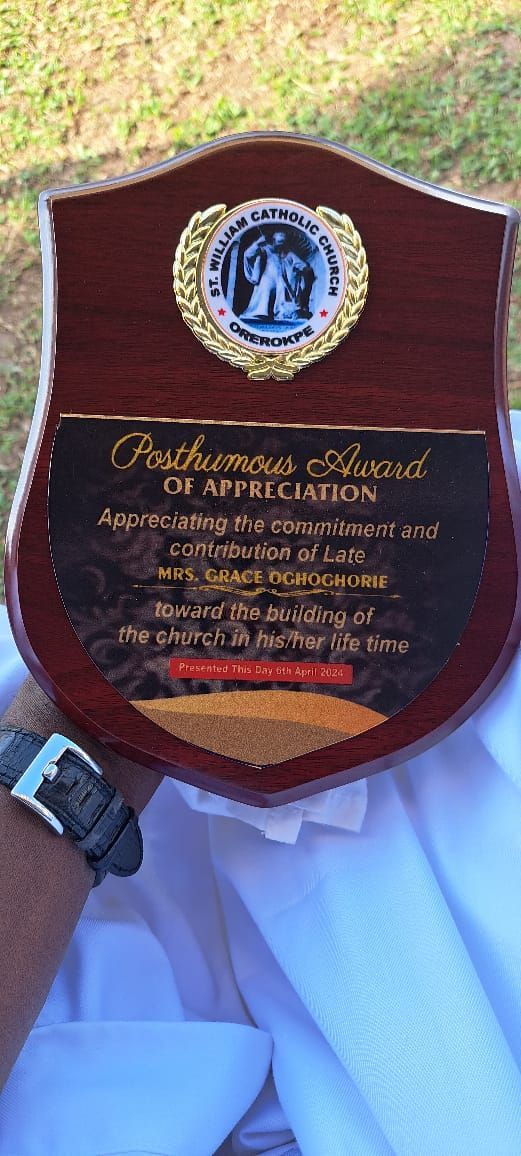 The Grace Oghoghorie Foundation was part of a significant event on April 6th, 2024: the consecration ceremony for the renovated St. Williams Catholic Church in Orerokpe, Delta State. This event was a memorable occasion, and we were honored to be part of the celebration for Mama Grace Og hoghorie. The church expressed its deep appreciation for the late Mama Grace Oghoghorie's immense contribution to the building of the church and her support for others. They were truly grateful for her generosity and prayed that God would continue to bless her soul. During the ceremony, a special posthumous “AWARD OF APPRECIATION” was bestowed upon her in recognition of her remarkable accomplishments. As the proverbial saying goes, "All Are Welcome For More."